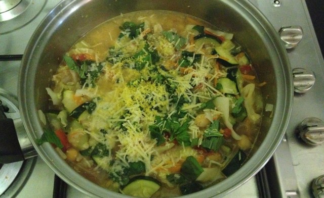Green minestrone with chickpeas and lemon (adapted from Gourmet Traveler’s April 2014 issue)
