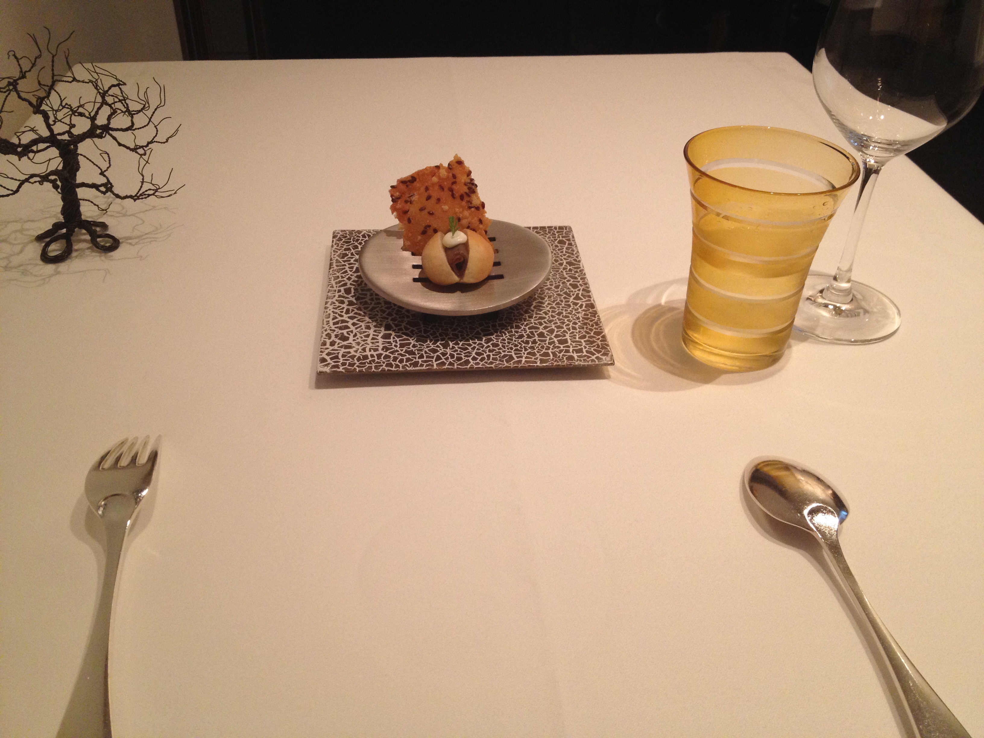 Of course they start you off with a little amuse bouche – some fennel seed crackers and a tiny roast beef roll.