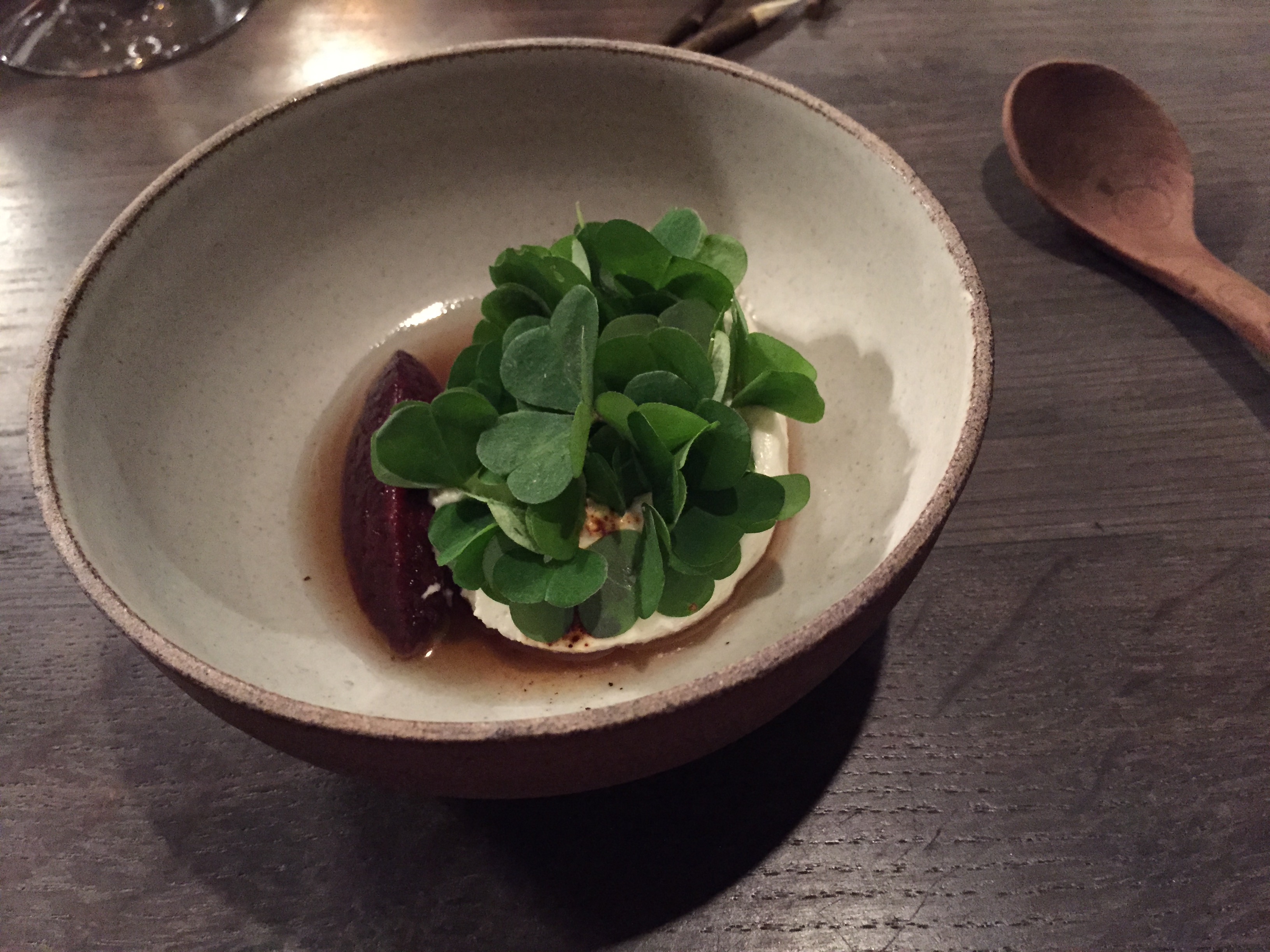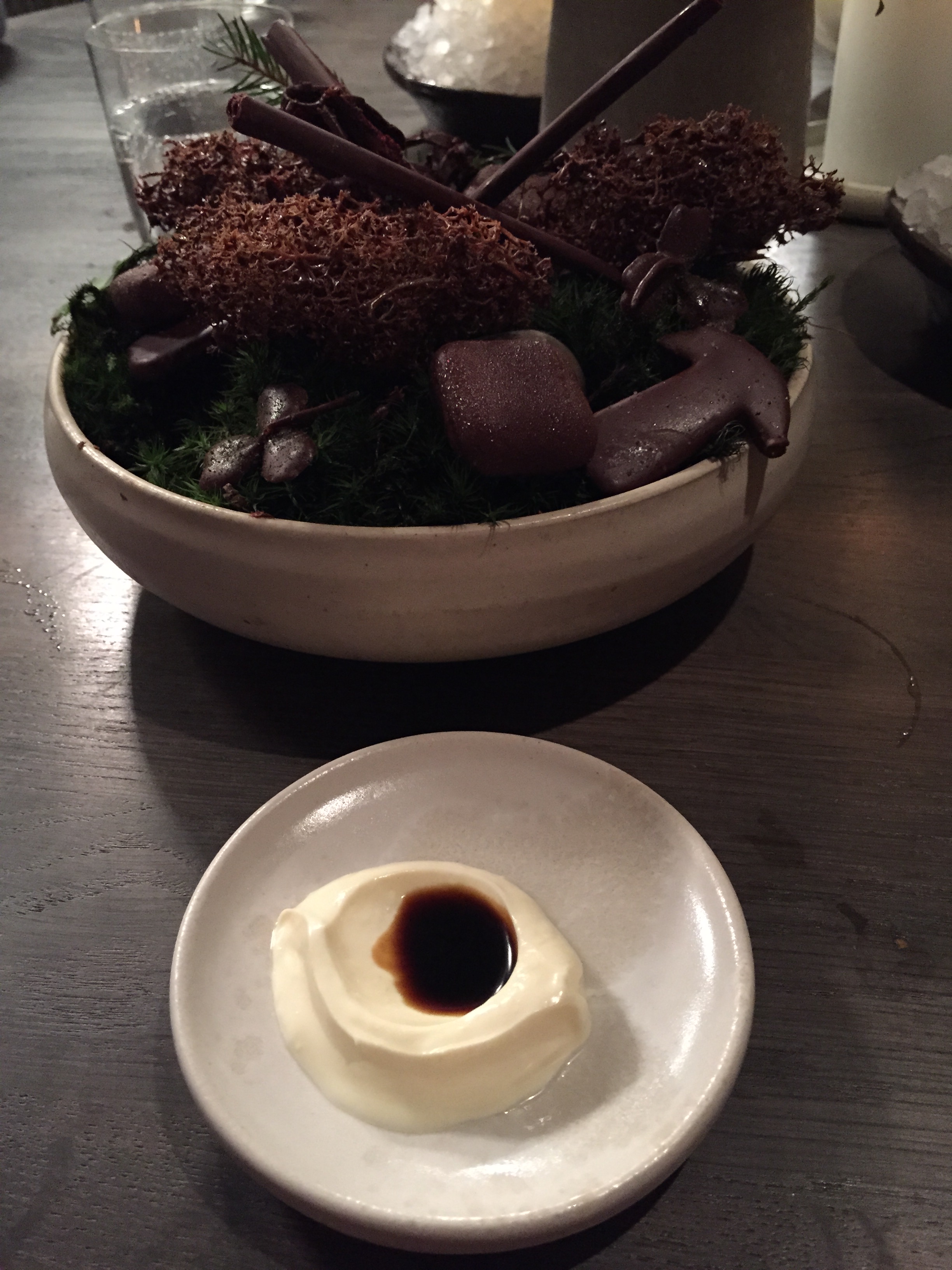 Rhubarb and sheep’s milk yoghurt with of course more greens on the top. Noma is all about the foraging philosophy in case you couldn’t tell by now. I liked this as I love rhubarb, but was really craving chocolate at this point.